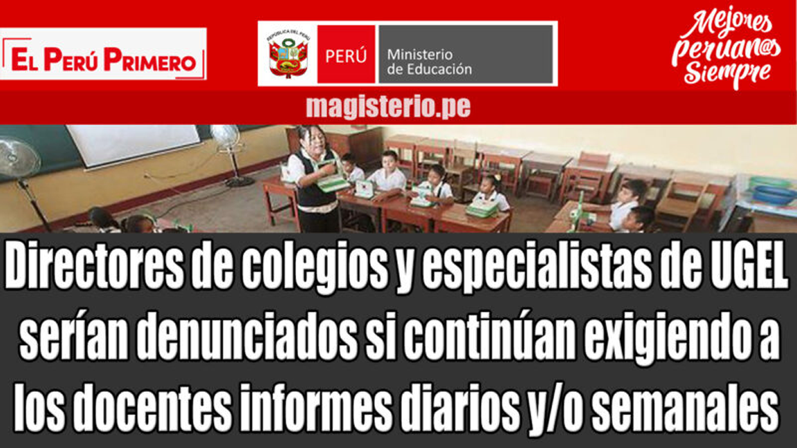 Directores de colegios y especialistas de UGEL serían denunciados si continúan exigiendo a los docentes la presentación virtual de los informes diarios y/o semanales de trabajo remoto “Aprendo en casa”